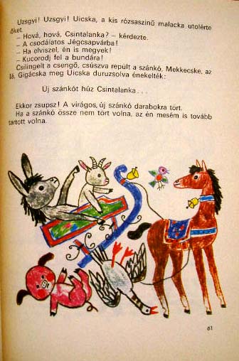 【商品番号】HE-033 【絵/文】 Reich Karoly/Kovacs Klara 【発行年/出版社】 1986/Tankonyvkiado 【サイズ/ページ数】 28.2×20.cm/108P ソフトカバー ハンガリー語 【イラスト】 8割以上のページにカラーイラスト。 【状態】 表紙に小さな破れ、折れ、痛み。折れ跡、若干の痛みがあるページあり。 【内容】 ハンガリーの子供向け国語の学習絵本。 レイク・カーロイの可愛いイラストが沢山収録されています。 ザラっとした紙質でイラストの発色も綺麗です。 【価格】 SOLD OUT |