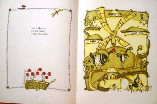 【商品番号】HE-107 【絵/文】 Volodimir Golozubov/Rez Andras 【発行年/出版社】 1982/VESZELKA KIADO 【サイズ/ページ数】 26.5×20cm/78P ハードカバー ハンガリー語 【イラスト】 ほぼ全ての見開きにカラーイラスト。 【状態】 表紙に若干痛み、ヤケ。綴じ糸が一部切れているページあり。若干の汚れが数ページにありますが、概ね良好。 【内容】 ウクライナの絵本のハンガリー語版。 Volodimir Golozubovの個性的で可愛いイラストがとても素敵な絵本です。 5つのお話が収録されています。 【価格】 SOLD OUT |