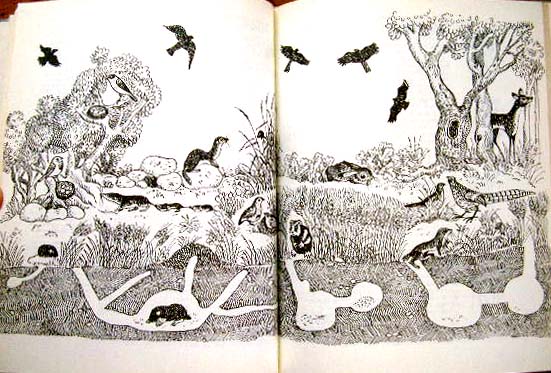 【商品番号】CE-801 【絵/文】 Jan Kudlacek、Julie Svobodova/Jana Stroblova 【発行年/出版社】 1984年/MADACH 【サイズ/ページ数】 25.5×20.5cm/192P ハードカバー ハンガリー語 【イラスト】 見開き全面カラーイラスト28点。その他8割以上のページにモノクロイラスト。 【状態】 表紙にシワ。背表紙にツブレがあり全てのページに渡って中央上部シワ。その他概ね良好。 【内容】 動植物についての学習絵本に、ヤン・クドラーチェクが綺麗なカラーイラストを描いています。 クドゥラーチェクのカラーイラストは全て見開きを使っているので、美しいイラストが大きなサイズで楽しめます。 その他のモノクロイラストはジュリエ・スヴォボドヴァーが描いています。 チェコ版は「TAJEMSTVI POLI」ですが、こちらは少しサイズが大きくなったハンガリー版です。 モノクロイラストの部分などの構成が若干変わっているものの、カラーイラストはチェコ版と同じですが、サイズが大きいのが嬉しいですね。 【価格】 \4900 |