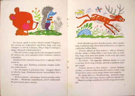 【商品番号】HE-040 【絵/文】 Reich Karoly/Mora Ferenc 【発行年/出版社】 1979年/MORA 【サイズ/ページ数】 23.5×16.7cm/16P ソフトカバー ハンガリー語 【イラスト】 ほぼ全てのページにカラーイラスト。 【状態】 表紙に若干の汚れ、痛み。裏表紙にバーコードシール。本を綴じているホッチキスが錆びて、汚れが付いている部分があります。 【内容】 「とても大きなハリネズミ」というお話。 レイク・カーロイの描くハリネズミとクマたちがとても可愛い冊子タイプの絵本。 【価格】 SOLD OUT |