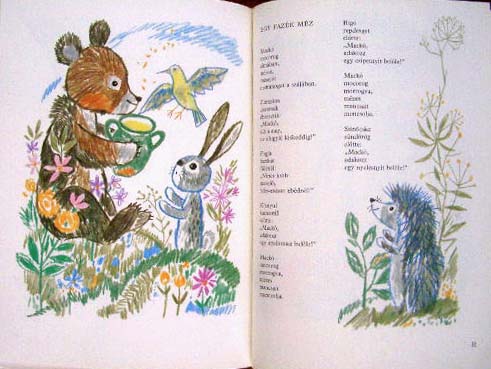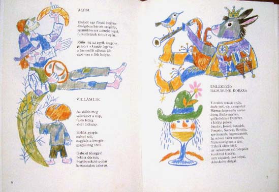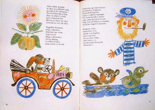 【商品番号】HE-073 【絵/文】 Reich Karoly/Kormos Istvan 【発行年/出版社】 1986年/MORA 【サイズ/ページ数】 25×18cm/62P ハードカバー ハンガリー語 【イラスト】 ほぼ全てのページにカラーイラスト。 【状態】 角に折れ跡があるページあり。見返し部分や3ページ程若干汚れがあるページがありますが、概ね良好。 【内容】 22の短いお話(詩?)に、レイク・カーロイがイラストを描いている絵本。 レイク・カーロイの可愛いイラストが次々登場するおすすめ絵本です。 【価格】 SOLD OUT |