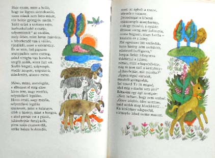 【商品番号】HE-128 【絵/文】 Reich Karoly/Mora Ferenc 【発行年/出版社】 1984/MORA 【サイズ/ページ数】 24×17cm/32P ハードカバー ハンガリー語 【イラスト】 ほぼ全てのページにカラーイラスト。 【状態】 表紙に若干痛み、小さな折れがあるページがありますが、概ね良好。 【内容】 ハンガリーの民話「金の毛の子羊」にレイク・カーロイがイラストを描いている絵本。 【価格】 \3000 |