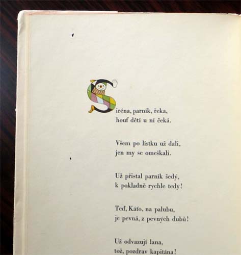 【商品番号】CE-962 【絵/文】 Jiri Trnka/Vladimir Holan 【発行年/出版社】 1962年/SNDK 【サイズ/ページ数】 26×20.5cm/60P ハードカバー チェコ語 【イラスト】 全面カラーイラスト14点。その他カラーイラスト38点。 【状態】 カバーに破れ、痛み、汚れ。表紙に痛み。汚れ、シールのあるページあり。その他概ね良好。 【内容】 イジー・トゥルンカの美しいイラストの絵本。 プラハの名所も登場する全面を使って描かれたイラストは印刷が非常に綺麗で素敵ですが、ページ毎の文章の最初の文字がイラスト化されている所もとても可愛いです。 【価格】 \3900 |