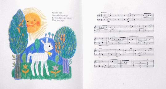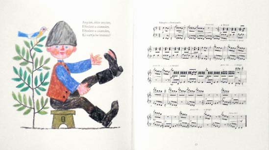 【商品番号】HE-129 【絵/文】 Reich Karoly/Bartok Bela 【発行年/出版社】 2010/Holnap Kiado 【サイズ/ページ数】 22.5×20.5cm/18P ソフトカバー ハンガリー語 【イラスト】 ほぼ全ての見開きにカラーイラスト。 【状態】 概ね良好。 【内容】 民族音楽研究家でもある世界的に有名なハンガリー出身の作曲家、バルトーク・ベーラが収集したハンガリーの民謡をピアノ曲としてCDに収録。 1分前後の短いピアノ曲15曲が収録されたCDと、レイク・カーロイのイラストが添えられた楽譜を掲載した冊子がセットになっています。 【価格】 \3500 |