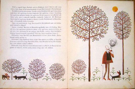 【商品番号】HE-105 【絵/文】 Reber Laszlo/Janikovszky Eva 【発行年/出版社】 1969/MORA 【サイズ/ページ数】 26.5×20cm/24P ハードカバー ハンガリー語 【イラスト】 全てのページにカラーイラスト。 【状態】 表紙に痛み、汚れ。破れのあるページあり。全体的に、汚れ、痛みがあります。 【内容】 ハンガリーの人気アーティスト、レーべル・ラースローがイラストを描いている、2匹のダックスフンドが主人公の絵本。 1969年発行で、全体的に汚れや痛みがありますが、古い紙と印刷の質感が、ラースローの可愛いイラストを更に引き立てています。 【価格】 SOLD OUT |