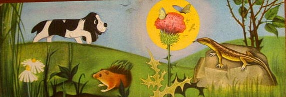 CE-223 【絵/文】 Karel Kilberger 【発行年/出版社】 1966/SNDK 【サイズ/ページ数】 14×20.3cm/12P ボードブック チェコ語 【イラスト】 全てのページにカラーイラスト。 【状態】 裏表紙に破れ。全体的に痛みが有りますが、落書き等は無く中身のイラスト部分は比較的良好。 【内容】 可愛いワンちゃんが森の中をお散歩して行く楽しいボード絵本。 文章は全く無い絵だけの絵本です。 【価格】 SOLD OUT |