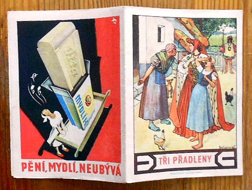 【商品番号】CME-011 【サイズ/ページ数】 11.4×8.3cm/8P チェコ語 【イラスト】 カラーイラスト4点(表紙含む)。 【状態】 若干痛みがありますが、概ね良好。 【内容】 二つ折りの小さな冊子で、見開きにカラーの挿し絵が描かれているミニ絵本。 年代等不明ですが、イラスト、紙質、印刷からして1960年代以前のもので、裏表紙が広告になっているので、ノベルティーかと思われます。 【価格】 \800 |