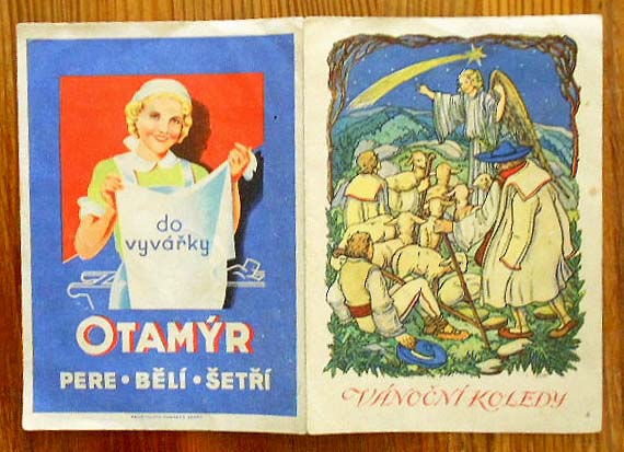 【商品番号】CME-017 【サイズ/ページ数】 14×10cm/4P チェコ語 【イラスト】 カラーイラスト2点(表紙含む)。 【状態】 角に折れ、若干の痛み、汚れがありますが、その他概ね良好。 【内容】 二つ折りの小さな冊子のミニ絵本の楽譜。 年代等不明ですが、イラスト、紙質、印刷からして1960年代以前のもので、裏表紙が広告になっているので、ノベルティーかと思われます。 【価格】 \600 |