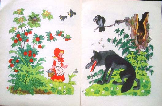 【商品番号】CE-176 【絵/文】 E. Bulatov O. Vasiljev/Charles Perrault 【発行年/出版社】 1974/MALYS 【サイズ/ページ数】 27.5×21.3cm/20P ソフトカバー チェコ語 【イラスト】 全てのページにカラーイラスト。 【状態】 表紙に痛み、破れ、スタンプ。本を綴じているホチキスにサビ。全てのページに渡って角、のどの下部に折れ跡。 【内容】 ソ連時代にロシアで出版された「赤ずきん」のチェコ語版。 テキストを囲むように描かれたイラストと、見開き一杯を使って描かれたイラストで構成されていて、おなじみのお話なのでチェコ語がわからなくても十分に楽しめる絵本です。 【価格】 \1800 |