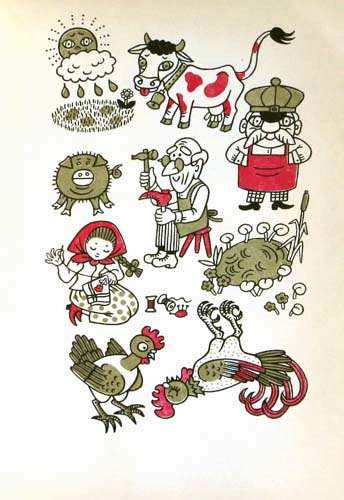 【商品番号】CE-263 【絵/文】 Helena Zmatlikova/Karel Jaromir Erben 【発行年/出版社】 1970年/ODEON 【サイズ/ページ数】 24×16.5cm/126P ハードカバー チェコ語 【イラスト】 全面2色イラスト10点。その他2色イラスト3点。 【状態】 カバーに破れ、ヤケ、に若干の汚れ、痛み。ほぼ全てのページに渡って角に緩い折れ。汚れあり。その他概ね良好。 【内容】 チェコの童話集に、ヘレナ・ズマトリコヴァーがイラストを描いている絵本。 赤と黒の2色イラストですが、ズマトリコヴァーらしい楽しいイラストの作品です。 【価格】 SOLD OUT |