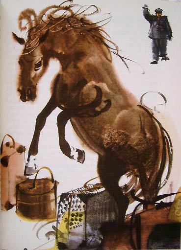 【商品番号】CE-042 【絵/文】 Mirko Hanak/Bohumil Riha 【発行年/出版社】 1966年/SNDK 【サイズ/ページ数】 22×17cm/120P ハードカバー チェコ語 【イラスト】 全面カラーイラスト8点。その他カラーイラスト17点。 【状態】 良好。 【内容】 ミルコ・ハナークが水墨画を思わせる美しいイラストが素敵な作品。 表紙の仔馬のイラストが印象的です。 【価格】 \2900 |
