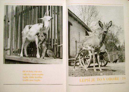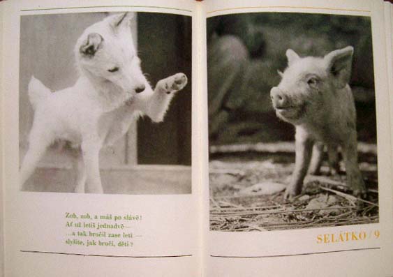 【商品番号】CE-986 【写真/文】 Slavy Stochla/Frantiska Hrubina 【発行年/出版社】 1971年/PROFIL 【サイズ/ページ数】 30×21.5cm/116P ハードカバー チェコ語 【イラスト】 ほぼ全ての見開きにモノクロ写真。 【状態】 表紙に破れ、痛み。見返しに破れ。破れのあるページあり。シワのあるページあり。若干痛みのあるページがありますが、その他概ね良好。 【内容】 フランチシェク・フルビーンの詩に、とてもカワイイ動物の写真が添えられた写真絵本。 犬、猫、馬、ブタ、ヤギなど、動物の子どもたちのとってもカワイイ姿がモノクロ写真で多数掲載されています。 どの写真も本当に可愛くて、ページを捲る度に「カワイイ〜!」を連発する事間違いなしの、動物好きの人に超オススメな作品です。 以前にご紹介した1949年発行のこちらとは、表紙デザイン、写真の色、文字レイアウト等が変わっています。 【価格】 SOLD OUT |