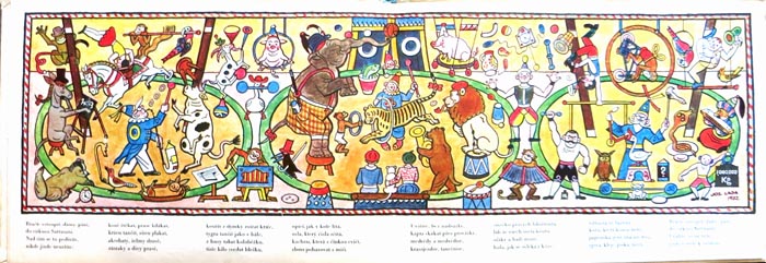 【商品番号】CE-059 【絵/文】 Josef Lada 【発行年/出版社】 1970/CESKOSLOVENSKY SPISOVATEL 【サイズ/ページ数】 23.5×34cm/12P ハードカバー チェコ語 【イラスト】 全てのページにカラーイラスト。 【状態】 表紙に汚れ、痛み。汚れ、折れ、シワあり。その他概ね良好 【内容】 チェコの国民的画家、ヨゼフ・ラダの描くイラストが横長の大きな版で楽しめる人気の絵本。 素敵な表紙の大判絵本でラダの絵本の中でも人気の高い作品ですが、最近はチェコでもレアものとなって来て状態の悪いものが多いのですが、表紙にシミ汚れがあるものの比較的良い状態です。 【価格】 SOLD OUT |