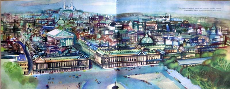 【商品番号】CE-086 【絵/文】 Jiri Kalousek/Miroslav Ivanov 【発行年/出版社】 1965/SNDK 【サイズ/ページ数】 20×26cm/58P ハードカバー チェコ語 【イラスト】 全面カラーイラスト17点。その他カラーイラスト10点。 【状態】 表紙に若干痛み。全てのページに渡って中央上部にシワ。若干の破れ、折れ、汚れのあるページあり。その他概ね良好。 【内容】 パリを中心にフランスを紹介している絵本。 イジー・カロウセックがイラストを手がけています。 【価格】 \3400 |