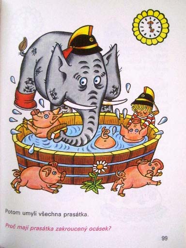 【商品番号】CE-546 【絵/文】 Helena Zmatlikova/Jorgen Clevin 【発行年/出版社】 1981/ALBATROS 【サイズ/ページ数】 26×20cm/110P ハードカバー チェコ語 【イラスト】 ほぼ全てのページにカラーイラスト。 【状態】 表紙に痛み、書き込み。見返しにスタンプと書き込み。扉部分に書き込み。20ページ程にシミ汚れあり。その他概ね良好。 【内容】 ゾウと男の子のお話に、ヘレナ・ズマトリコヴァーがイラストを描いている絵本。 ほぼ全てのページに可愛いイラストがあるので、見ていてとても楽しい絵本です。 【価格】 SOLD OUT |