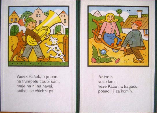 【商品番号】CE-180 【絵/文】 Josef Lada 【発行年/出版社】 1984年/ALBATROS 【サイズ/ページ数】 23.8×16.5cm/12P ボードブック チェコ語 【イラスト】 全てのページにカラーイラスト。 【状態】 全体的に若干痛みがありますが、概ね良好。 【内容】 ヨゼフ・ラダのユーモラスなイラストが楽しい、蛇腹タイプのボードブック。 【価格】 SOLD OUT |