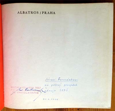 【商品番号】CE-283 【絵/文】 Jitka Kolinska/Ota Safranek 【発行年/出版社】 1970/ALBATROS 【サイズ/ページ数】 19×20cm/148P ハードカバー チェコ語 【イラスト】 全面カラーイラスト4点。その他モノクロイラスト24点。 【状態】 表紙に若干痛み。扉に書き込み、若干痛みがあるページあり。その他概ね良好。 【内容】 イトカ・コリーンスカーがイラストを描いている絵本。 1965年の初版は縦長ですがこの版は発行部数が少なめです。 【価格】 \2900 |