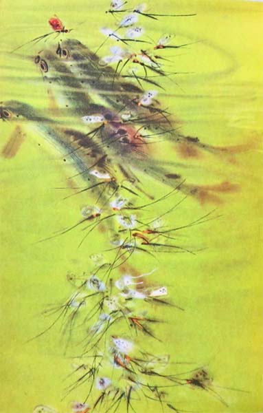 【商品番号】CE-505 【絵/文】 Mirko Hanak/Jaromir Tomecek 【発行年/出版社】 1965年/SNDK 【サイズ/ページ数】 21×15cm/166P ハードカバー チェコ語 【イラスト】 カラーイラスト8点。その他モノクロイラスト26点。 【状態】 カバーに痛み。綴じから外れかけているページあり。若干シワあり。その他概ね良好。 【状態】 ミルコ・ハナークが魚のイラストを中心に挿し絵を描いている小説。 美しいイラストです。 【価格】 SOLD OUT |
