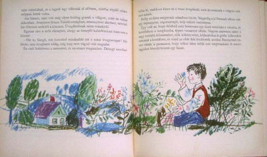 【商品番号】HE-114 【絵/文】 Reich Karoly/Mora Ferenc 【発行年/出版社】 1968年/MORA 【サイズ/ページ数】 20×17.5cm/176P ハードカバー ハンガリー語 【イラスト】 全面カラーイラスト20点、その他カラーイラスト27点。 【状態】 カバーに破れ(テープで補修あり)、痛み、汚れ、落書き、ヤケ。全てのページに渡って角に緩い折れ跡がありますが、その他概ね良好。 【内容】 男の子が主人公のお話に、レイク・カーロイがイラストを描いている絵本。 【価格】 SOLD OUT |