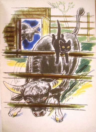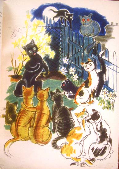 【商品番号】CE-096 【絵/文】 Ladislav Cerny/Zdenek Vogel 【発行年/出版社】 1949年/VESMIR 【サイズ/ページ数】 30×21.5cm/98P ハードカバー チェコ語 【イラスト】 全面カラーイラスト15点。47点。 【状態】 表紙に破れ、痛み。見返しに破れ。若干汚れのあるページがありますが、その他概ね良好。 【内容】 インパクトのある黒ネコの表紙がネコ好きにはたまらないこの絵本は、主人公の黒ネコが田舎の家を飛び出して動物園へ冒険に行くお話。 ラディスラフ・チェルニーの素敵なイラストが、古い絵本ならではの紙と印刷でとても良い質感を出しています。 【価格】 SOLD OUT |
