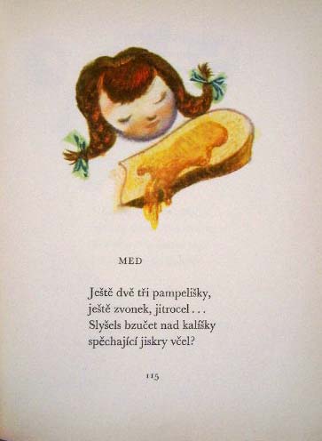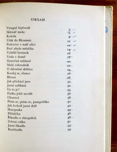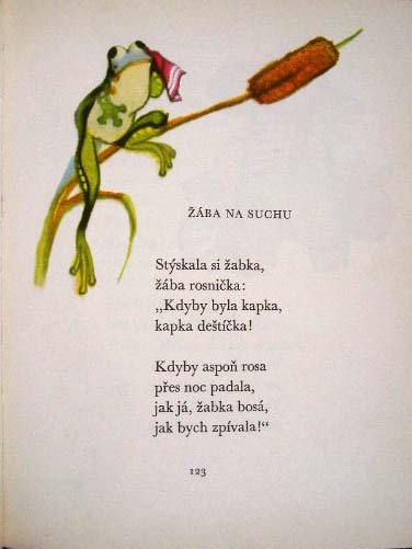 【商品番号】CE-189 【絵/文】 Jiri Trnka/Zdenek Kriebel 【発行年/出版社】 1966/SNDK 【サイズ/ページ数】 22×17cm/174P ハードカバー チェコ語 【イラスト】 ほぼ全ての見開きページにカラーイラスト。 【状態】 表紙に若干痛み。折れ、痛み、書き込みあり。その他概ね良好。 【内容】 ズデネック・クリーベルの詩にイジー・トゥルンカが挿絵を描いている詩集絵本。 トゥルンカのやさしい感じのイラストが多数収録されています。 こちらは1966年のSNDK版で、1976年のALBATROS版と比較すると、表紙のデザインと見返しのイラストが違っていて、サイズが若干大きいです。 【価格】 \3500 |
