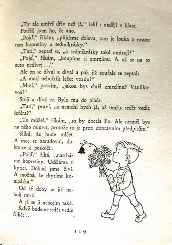 【商品番号】CE-508 【絵/文】 Helena Zmatlikova/Ludvik Askenazy 【発行年/出版社】 1955年/Ceskoslovensky spisovatel 【サイズ/ページ数】 17.3×12.5cm/124P ハードカバー チェコ語 【イラスト】 モノクロイラスト37点。 【状態】 カバーに痛み。全てのページに渡ってノドの下部にシワ。40ページ程に折れ。その他概ね良好。 【内容】 「子供たちの物語」というお話に、ヘレナ・ズマトリコヴァーがイラストを描いているコンパクトな書籍。 モノクロイラストですが、ズマトリコヴァーらしい可愛いイラストです。 【価格】 SOLD OUT |
