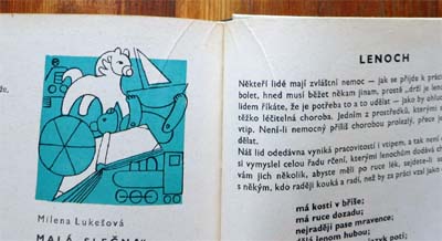 【商品番号】CE-236 【絵/文】 Bohumil Stepan、Milos Noll、Dobroslav Foll、他/Jan Noha、他 【発行年/出版社】 1965年/SNDK 【サイズ/ページ数】 16.5×16.5cm/370P ハードカバー チェコ語 【イラスト】 9割以上の見開きに2色もしくはモノクロのイラスト、写真。 【状態】 表紙に若干の痛み、汚れ。痛み、シワ、汚れのあるページあり。その他概ね良好。 【内容】 表紙のボフミル・シュチェパーンはじめ、スタニスラフ・ドゥダ、ドブロスラフ・フォル、クヴィエタ・グリガロヴァー(パツォウスカー)、イジー・カロウセック、ヤン・クビチェク、ミロシュ・ノル、など、総勢24名のイラストレーターと、6名のフォトグラファーが参加しています。 様々なタイプのイラストや、当時の子供たちの写真が見られる大変興味深い作品です。 【価格】 \5200 |