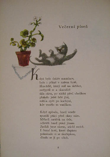 【商品番号】CE-849 【絵/文】 Jiri Trnka/Jaroslav Seifert 【発行年/出版社】 1971/ALBATROS 【サイズ/ページ数】 24.5×17cm/80P ハードカバー チェコ語 【イラスト】 全面カラーイラスト8点。その他カラーイラスト18点。 【状態】 表紙に小さな傷等ありますが、概ね良好。 【内容】 ヤロスラフ・サイフェルトの詩にイジー・トゥルンカが挿絵を描いている、綺麗な表紙のデザインで人気の絵本。 子供や花などをモチーフにしたトゥルンカらしいイラストの作品です。 【価格】 \2900 |