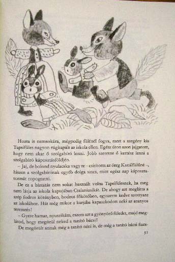 【商品番号】HE-044 【絵/文】 Reich Karoly/Mora Ferenc 【発行年/出版社】 1983年/MORA 【サイズ/ページ数】 24×16.7cm/184P ハードカバー ハンガリー語 【イラスト】 全面カラーイラスト4点、その他モノクロイラスト27点。 【状態】 表紙に若干痛み。折れ跡のあるページがありますが、概ね良好。 【内容】 ハンガリーを代表する児童文学作家、モーラ・フェレンツのお話に、これまたハンガリーを代表する挿絵画家、レイク・カーロイがイラストを描いています。 イジワルそうなキツネと動物たちのお話。 【価格】 SOLD OUT |