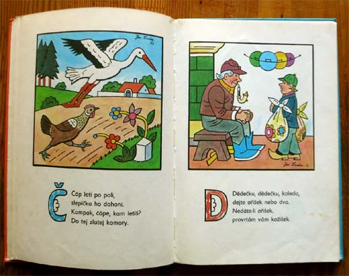 【商品番号】CE-347 【絵/文】 Josef Lada 【発行年/出版社】 1972/ALBATROS 【サイズ/ページ数】 24.5×16.8cm/30P ハードカバー チェコ語 【イラスト】 ほぼ全てのページにカラーイラス。 【状態】 表紙に破れ、若干の痛み。見返しに破れ、書き込み。小さな破れ、汚れ、全体的にシワあり。その他概ね良好。 【内容】 ヨゼフ・ラダのABC絵本。 ABC順に始まる短いお話にヨゼフ・ラダが可愛いイラストを描いている、チェコの名作絵本です。 【価格】 \1800 |