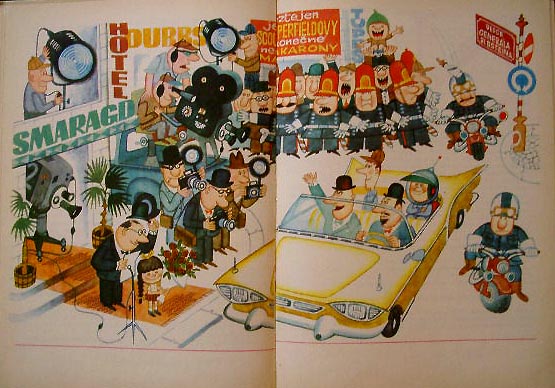 宇宙に行ったり撃ち合いが始まったりと、何だかドタバタしたお話で、イラストも60年代らしい良い味出したイラストが見開きで大きく描かれている楽しい絵本。