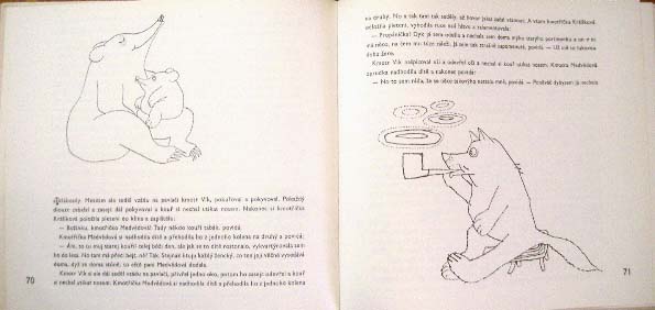 【商品番号】CE-014 【絵/文】 Ota Janecek/Joel Chandler Harris 【発行年/出版社】 1977年/ALBATROS 【サイズ/ページ数】 22×23.5cm/158P ハードカバー チェコ語 【イラスト】 全面カラーイラスト4点。その他モノクロイラスト39点。 【状態】 表紙に若干痛み。版ズレしているイラストあり。その他概ね良好。 【内容】 アメリカのジョーエル・チャンドラー・ハリス作のお話に、オタ・ヤネチェクがイラストを描いています。 モノクロの線画が中心ですが、とても可愛いイラストばかりです。 【価格】 \3500 |