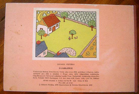 【商品番号】CE-007 【絵/文】 Helena Zmatlikova/Eduard Petiska 【発行年/出版社】 1975年/ALBATROS 【サイズ/ページ数】 16×24cm/14P ボードブック チェコ語 【イラスト】 全てのページにカラーイラスト。 【状態】 表紙に痛み、汚れ。若干汚れのあるページがありますが、その他概ね良好。 【内容】 エドアルド・ぺチシカのお話に、ヘレナ・ズマトリコヴァーのイラストで、日本でも「りんごのき」として人気の高い絵本のチェコ版原書。 【価格】 \1800 |