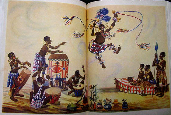 アフリカの少年のジャングル冒険物語。1959年と古い作品ですが、鮮やかなカラーイラストが大変美しい作品。