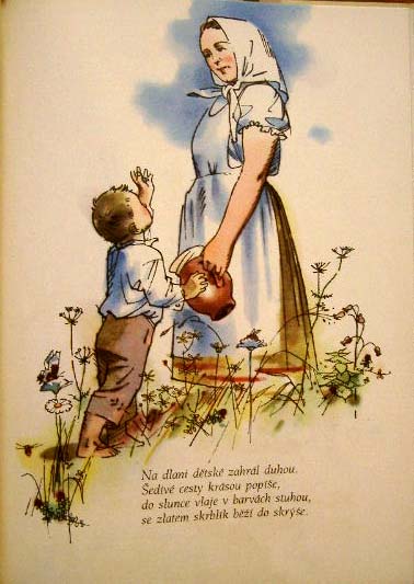 【商品番号】CE-054 【絵/文】 Adolf Zabransky/Frantisek Branislav 【発行年/出版社】 1952/SNDK 【サイズ/ページ数】 28.5×21.5cm/46P ハードカバー チェコ語 【イラスト】 ほぼ全てのページにカラーイラスト。 【状態】 カバーに破れ(補修あり)、痛み。汚れ、折れのあるページあり。表紙に痛み。その他概ね良好。 【内容】 アドルフ・ザブランスキーが子供たちを綺麗な草花と共に描いている美しい絵本。 ザブランスキーの画力の素晴らしさを改めて実感させられる作品で、印刷がとても綺麗です。 【価格】 SOLD OUT |