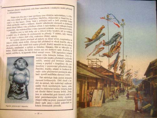 【商品番号】CE-391 【絵/文】 /Joe Hloucha 【発行年/出版社】 1926年/V PRAZE 【サイズ/ページ数】 25×18cm/86P ソフトカバー チェコ語 【イラスト】 カラーイラスト(写真)34点。モノクロイラスト17点。 【状態】 表紙に破れ、若干の痛み、汚れ。数ページに小口部分の破れ、角に折れ、若干汚れがありますが、その他概ね良好。 【内容】 「日本の子供たちのおとぎばなし」というタイトルで、日本の子供文化やおとぎ話を紹介した本。 著者は日本愛好家、作家、美術蒐集家として名高い、ヨエ・ホロウハ(フロウハ)で、ひな祭りや鯉のぼりなどの習慣や、「浦島太郎」「ぶんぶく茶釜」「舌きりすずめ」などおなじみの日本昔話がイラストや彩色されたレトロな写真と共に紹介されている貴重な作品です。 和綴じ製本されていて、チェコではなじみのない袋綴じとなっているからか、小口部分が切られてしまっているものが数ページありますが、酷い痛みや汚れはなく、この時代のものとしては比較的良い状態です。 【価格】 SOLD OUT |