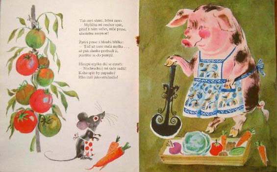 【商品番号】CE-372 【絵/文】 A. Jelisejev/Samuil Marsak 【発行年/出版社】 1973年/Malys 【サイズ/ページ数】 27.3×22cm/14P ソフトカバー チェコ語 【イラスト】 全てのページにカラーイラスト。 【状態】 表紙に若干痛み。裏表紙に折れ跡とスタンプ。ページを止めるホッチキスがサビてサビ汚れが付いています。 【内容】 ロシアの絵本のチェコ語版。 可愛いネズミが主人公で次々と色んな動物が登場します。 【価格】 SOLD OUT |