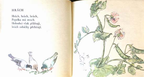 【商品番号】CE-524 【絵/文】 Milada Maresova/Jan Carek 【発行年/出版社】 1964年/SNDK 【サイズ/ページ数】 16×16cm/30P ソフトカバー チェコ語 【イラスト】 ほぼ全てのページにカラーイラスト。 【状態】 表紙に若干痛み。若干の汚れあり。その他概ね良好。 【内容】 ヤン・チャレックの詩にミラダ・マレソヴァーが挿絵を描いている冊子タイプの絵本。 様々な作物と子供や動物たちの美しいイラストです。 【価格】 SOLD OUT |