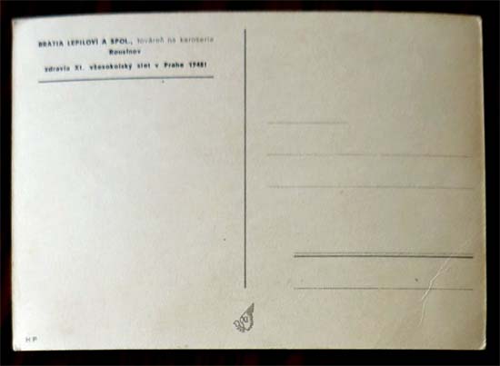 1948年にプラハで開催された「第11回ソコル祭典」の貴重な未使用ポストカード