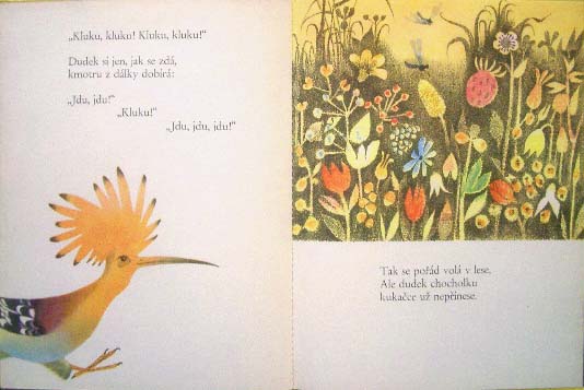 【商品番号】CE-269 【絵/文】 Ota Janecek/Frantisek Hrubin 【発行年/出版社】 1961/SNDK 【サイズ/ページ数】 26×19.8cm/16P ハードカバー チェコ語 【イラスト】 ほぼ全てのページにカラーイラスト。 【状態】 表紙に痛み。その他概ね概ね良好。 【内容】 フランチシェク・フルビーンの詩にオタ・ヤネチェクがお得意の鳥のイラストを描いています。 1983年発行の2刷が多く出回っていますが、こちらはSNDK版の初版で、一部イラストの構成が違っていますが、細かな線までくっきり見える印刷のクオリティーが素晴らしいです。 【価格】 SOLD OUT |