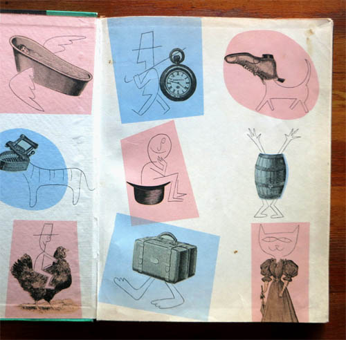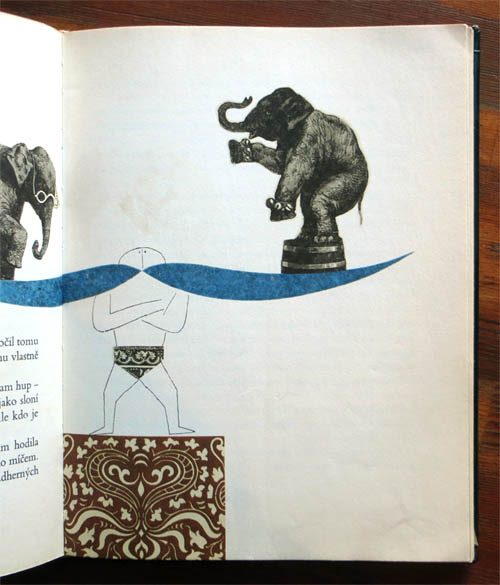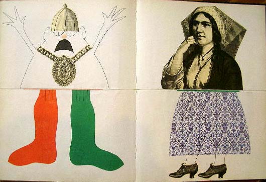【商品番号】CE-620 【絵/文】 Bohumil Stepan/Ludvik Askenazy 【発行年/出版社】 1965年/SNDK 【サイズ/ページ数】 26×20cm/148P ハードカバー チェコ語 【イラスト】 カラーイラスト52点。 【状態】 表紙に若干痛み。数ページに折れ、シワ。若干の破れ、汚れあり。見返しに破れ、汚れ。その他概ね良好。 【内容】 「狂った話」というタイトルにイラストがボフミル・シュチェパーンと来れば内容が悪い訳がありません。 コラージュを使った想像力豊かなイラストが素晴らしく、上下が分割されたイラストを組み合わせて遊べるページが付いているなど、遊び心満載の楽しい作品です。 【価格】 \5900 |
