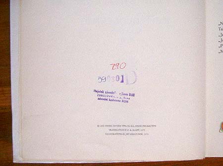 【商品番号】CE-050 【絵/文】 Jiri Behounek/Josef Guggenmos 【発行年/出版社】 1975年/ALBATROS 【サイズ/ページ数】 22×23.5cm/64P ハードカバー チェコ語 【イラスト】 全面カラーイラスト3点。その他カラーイラスト23点。 【状態】 表紙に破れ、痛み、汚れ。背表紙の角に傷みがあり、全てのページに渡って若干の痛み、中央上部に折れ跡。7ヶ所にスタンプ。破れがテープで補修されているページあり。 【内容】 イジー・ビェホウネクの個性的ななイラストが楽しい絵本。 【価格】 \1700 |