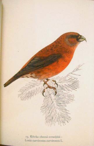 【商品番号】CE-945 【絵/文】 Karel Svolinsky/Dr.Josef Jirsik 【発行年/出版社】 1941/V PRAZE 【サイズ/ページ数】 19.7×13.5cm/88P ハードカバー チェコ語 【イラスト】 カラーイラス64点。 【状態】 表紙に若干の痛み、汚れ。全てのページに渡って中央下部にシワ。書き込み、破れ、若干の汚れ、折れがあるページあり。その他概ね良好。 【内容】 カレル・スヴォリンスキーが美しいイラストを描いている鳥の図鑑。 64羽の鳥たちが、スヴォリンスキーの芸術的イラストで描かれ、綺麗な印刷と相まって、鳥好きでなくとも思わず見入ってしまう逸品です。 【価格】 SOLD OUT |