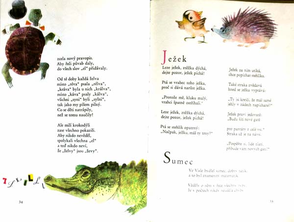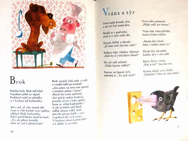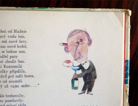 【商品番号】CE-480 【絵/文】 Marckel Stecer/Jan Brzechwa 【発行年/出版社】 1963/SNDK 【サイズ/ページ数】 25×17cm/76P ハードカバー チェコ語 【イラスト】 カラーイラスト50点。 【状態】 表紙に痛み。全てのページに渡ってノドの下部にシワ。シワ、折れあり。その他概ね良好。 【内容】 マルツェル・ステツケルがイラストを描いている絵本。 可愛いイラストです。 【価格】 SOLD OUT |