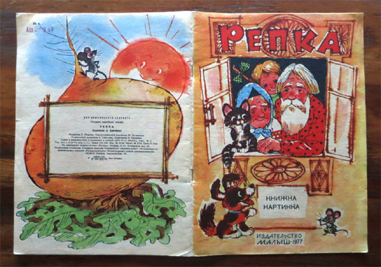 【商品番号】RE-020 【発行年】 1977 【サイズ/ページ数】 27.5×20cm/18P ソフトカバー ロシア語 【イラスト】 全てのページにカラーイラスト。 【状態】 表紙に痛み、スタンプ。全体的に折れ、シワあり。その他概ね良好。 【内容】 日本でもおなじみのロシア民話「おおきなかぶ」に、Anatoly Savchenkoがイラストを描いている冊子タイプの絵本。 【価格】 \1300 |
