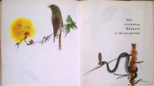 【商品番号】CE-358 【絵/文】 Mirko Hanak/Rudo Moric 【発行年/出版社】 1971/MLADE LETA 【サイズ/ページ数】 23.5×21cm/156P ハードカバー スロバキア語 【イラスト】 全面カラーイラスト12点。その他カラーイラスト66点。 【状態】 表紙に若干痛み。シワ、シールが貼られているページあり。その他概ね良好。 【内容】 「森の妖精」というタイトルで4つのお話が収録されている絵本で、ミルコ・ハナークが森の動物たちの美しいイラストを描いています。 以前ご紹介したチェコ版は「森のお話」というタイトルでほぼ同じ内容ですが、版形やイラストのレイアウトが若干違っています。 【価格】 SOLD OUT |