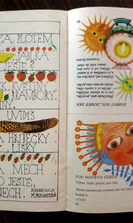 【商品番号】SL-003 【発行年】 1975年 【サイズ/ページ数】 24×19.5cm/32P チェコ語 【イラスト】 全てのページにカラーイラスト。 【状態】 全体的に折れ、シワがありますが、その他概ね良好。 【内容】 チェコ絵本でおなじみの面々がイラストを手がけているチェコの子供雑誌。 表紙・ヴァーツラフ・べドジフ。 Viera Bombova、イジー・カロウセック、クヴィエタ・パツォウスカー、マルケータ・プラファティツカー、などのイラスト。 【価格】 \1200 |
