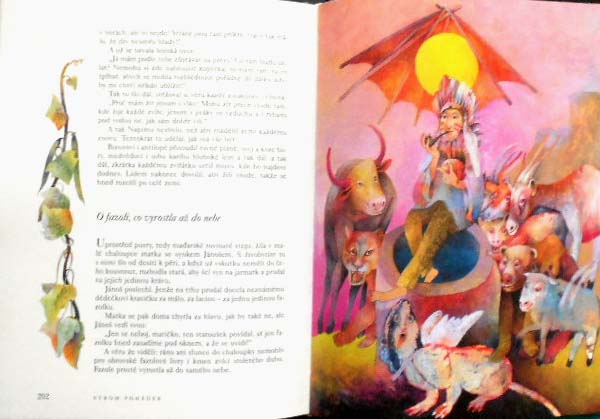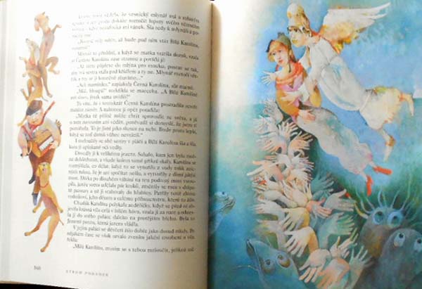 【商品番号】CE-555 【絵/文】 Dusan Kallay/Vladislav Stanovsky Jan Vladislav 【発行年/出版社】 1999/ALBATROS 【サイズ/ページ数】 26×20.5cm/216P ハードカバー チェコ語 【イラスト】 全面カラーイラスト15点。その他ほぼ全ての見開きにカラーイラスト。 【状態】 カバーに若干痛み。見返しから50ページ程に切り込みあり。その他概ね良好。 【内容】 スロバキアのドゥシャン・カーライがイラストを描いている童話集。 多くの童話が収録されていて、絵を見ると判るお話が幾つかあります。 ドゥシャン・カーライならではの色彩と幻想的なイラストの素晴らしい作品です。 【価格】 \12800 |