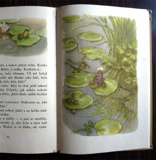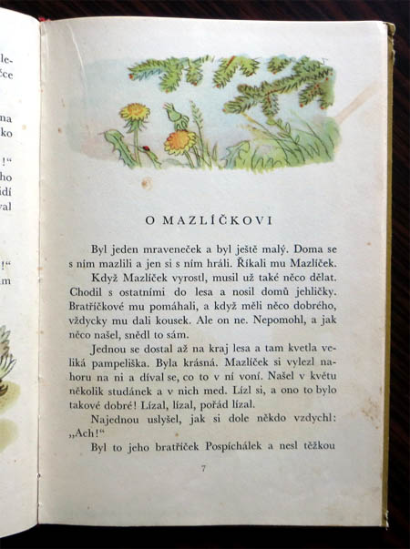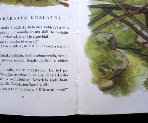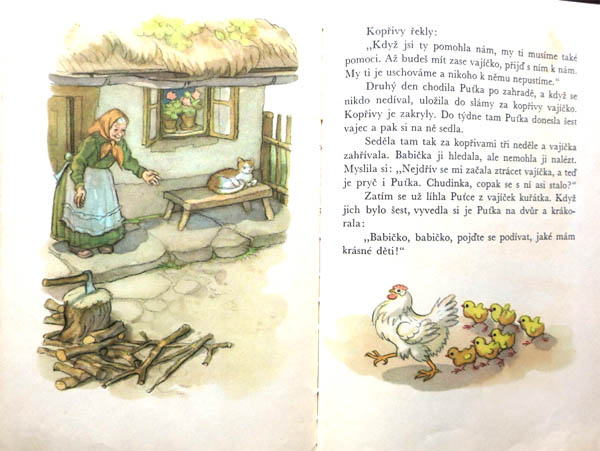 【商品番号】CE-623 【絵/文】 Antonin Pospisil/Frantisek Karnik 【発行年/出版社】 1957年/SNDK 【サイズ/ページ数】 24.5×16.5cm/50P ハードカバー チェコ語 【イラスト】 全面カラーイラスト7点。その他カラーイラスト34点。 【状態】 表紙に痛み。全てのページに渡って角に折れ、ノドの下部にシワ。全体的に汚れあり。その他概ね良好。 【内容】 アントニーン・ポスピーシルが挿絵を描いている絵本。 田舎の風景や動物たちが描かれています。 【価格】 \3800 |