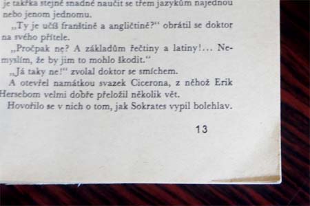 【商品番号】CE-456 【絵/文】 Adolf Born/Jules Verne & Andre Laurie 【発行年/出版社】 1963年/SNDK 【サイズ/ページ数】 16.5×12cm/356P ソフトカバー チェコ語 【イラスト】 2色イラスト30点。 【状態】 表紙に痛み。折り込みページに破れ、折れ。小さな破れ、折れあり。その他概ね良好。 【内容】 1958〜1968年にかけてチェコのSNDKから出版されたSF、アドベンチャー小説のペーパーバック・シリーズ「KARAVANA」。 表紙デザインと挿絵がカッコいいものが多いので気になるシリーズです。 フランスのジュール・ヴェルヌとアンドレ・ローリーの合作「難破船シンシア号の遺留物」のチェコ版に、アドルフ・ボルンが挿絵を描いています。 【価格】 SOLD OUT |